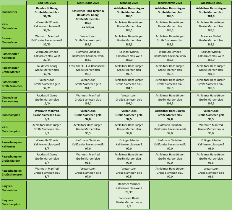 Bereits vor unserer Clubgründung haben wir gemeinsam eine Vergleichstischbewertung umgesetzt. Unsere 1. Clubsschau ist am 20./21. November 2021 im Zuge der Bundesschau geplant. Mit einer